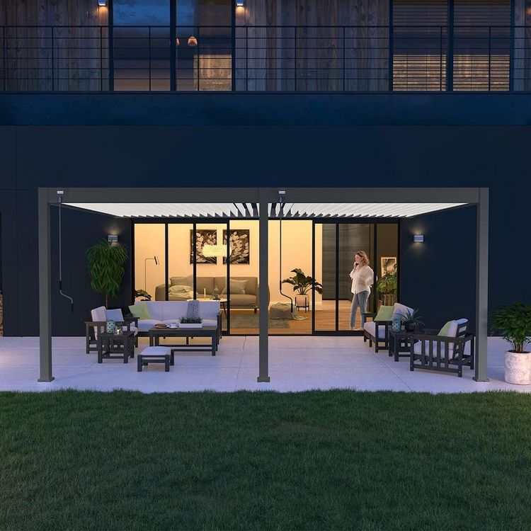 La pergola bioclimatique Ombréa 4x6M adossée vous offre un espace extérieur haut de gamme et facile à installer à 2 ou 3 personnes. Parfaite en prolongement de terrasse, restaurant ou hôtel, elle permet de sublimer l'extérieur tout en offrant une protection efficace contre les intempéries et un grand confort d'utilisation.
