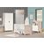 Dessus, traverse arrière du dispositif à langer, dessous, cotés, tablette niche en panneaux de particules mélaminés décor hêtre cendré. 1 tablette intérieure en panneaux de particules mélaminés décor blanc. Portes en panneaux de fibres de moyenne densité (MDF) laquées blanc. 4 pieds en hêtre laqués blanc. 2 joues du dispositif à langer en panneaux de fibres de moyenne densité (MDF) laquées blanc.