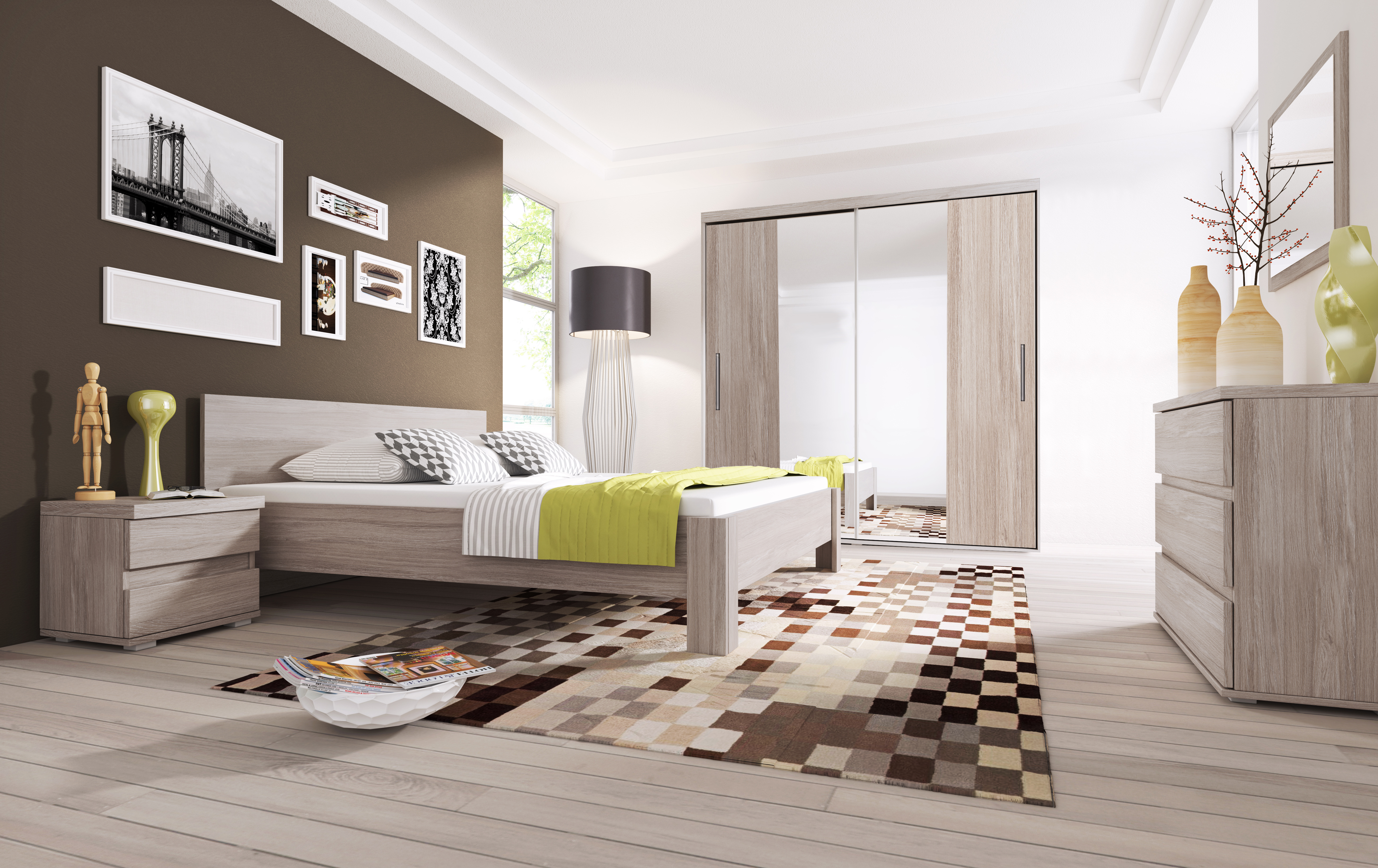 Chambre complète Lit 160x200cm + 2 chevet + 1 commode + 1 armoire CELINE