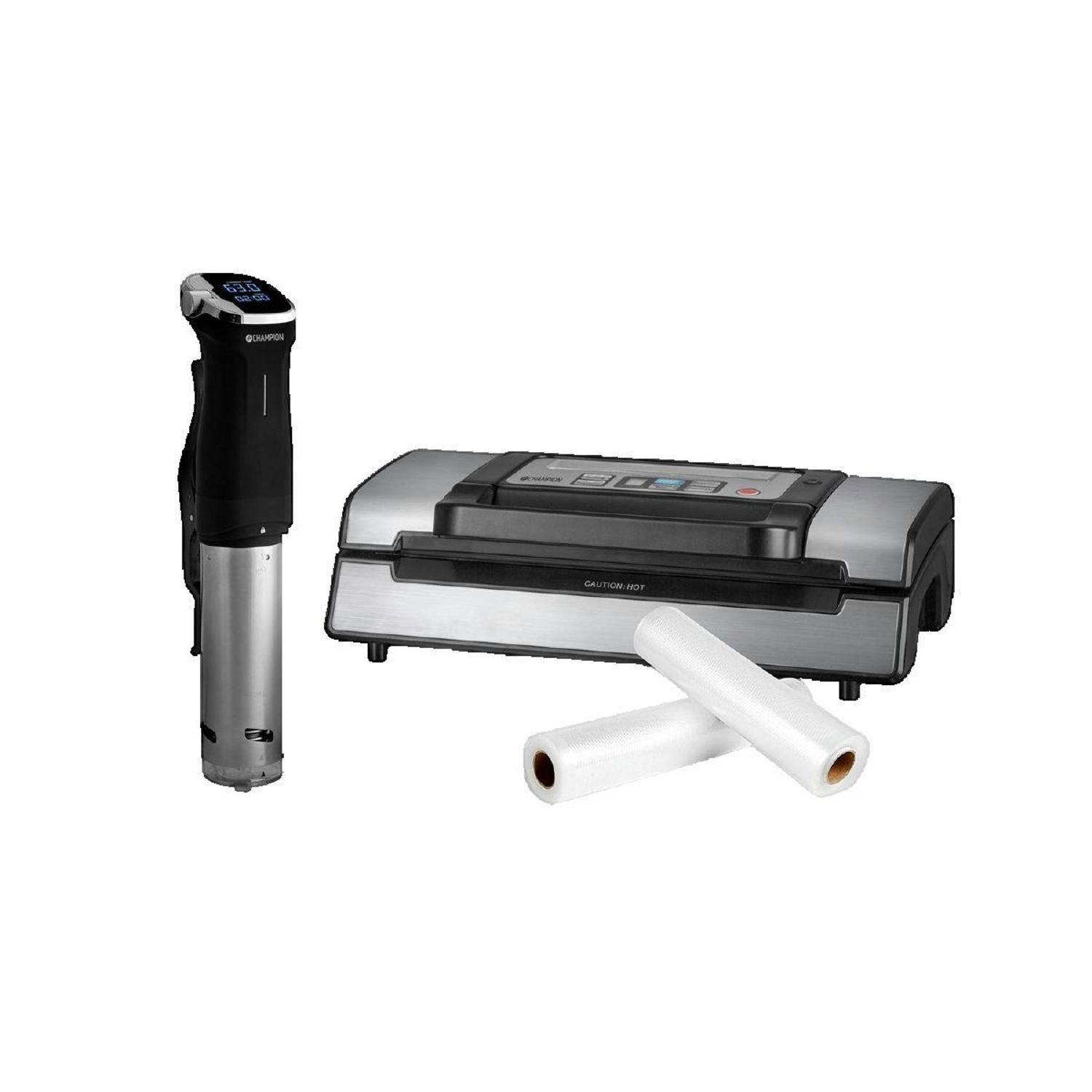 Découvrez l'art de la cuisson sous vide avec l'appareil de mise sous vide Champion en inox. Ce kit complet comprend un circulateur de précision sous vide (CHSV310), un metteur sous vide inox 130W (CHVF410) et un rouleau de sacs sous vide (CHVF410-ROLL). Idéal pour conserver la tendreté et la saveur