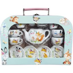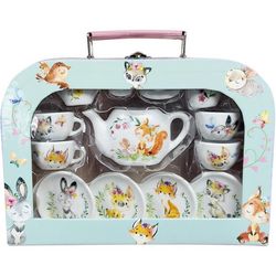 joli décor champêtre. Contient 4 assiettes, 4 tasses, un pot à lait et son couvercle, une théière et son couvercle et un sucrier en porcelaine. Dès 3 ans.