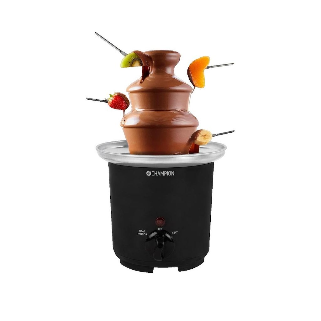 La fontaine à chocolat Champion CF100 est idéale pour les fêtes et événements. Cette fontaine élégante en acier inoxydable dispose de 3 niveaux pour faire couler environ 200g de chocolat fondu. Son système de chauffage rapide permet de maintenir le chocolat à bonne température pour y plonger fruits et marshmallows facilement. Compacte et légère avec un poids de 0,75 kg, elle offre un réglage simple et une utilisation pratique pour régaler vos invités à tout moment. Son design noir s'intègre parfaitement dans toutes les cuisines et ses matériaux de qualité assurent durabilité et performance.