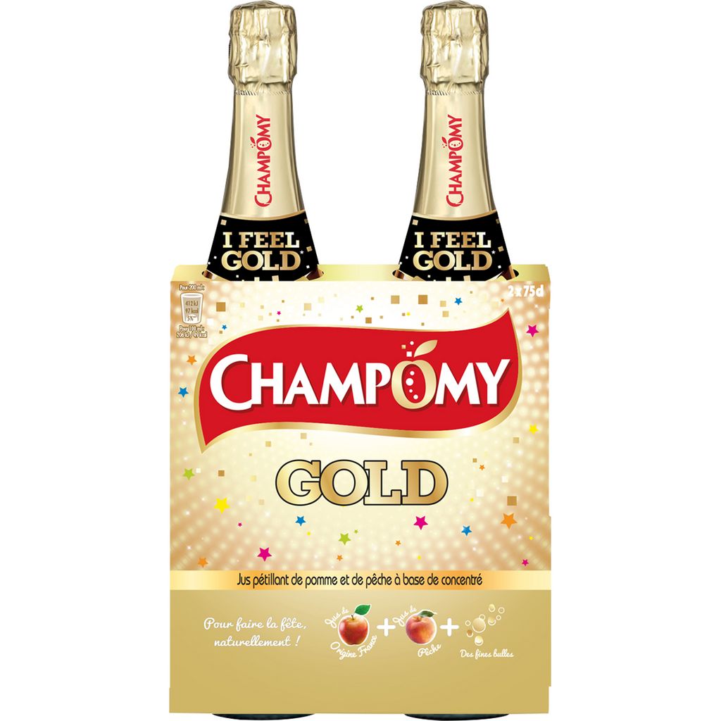 Ingrédients : jus de pomme 90%, jus de pêche à base de concentré 10%, gaz carbonique.