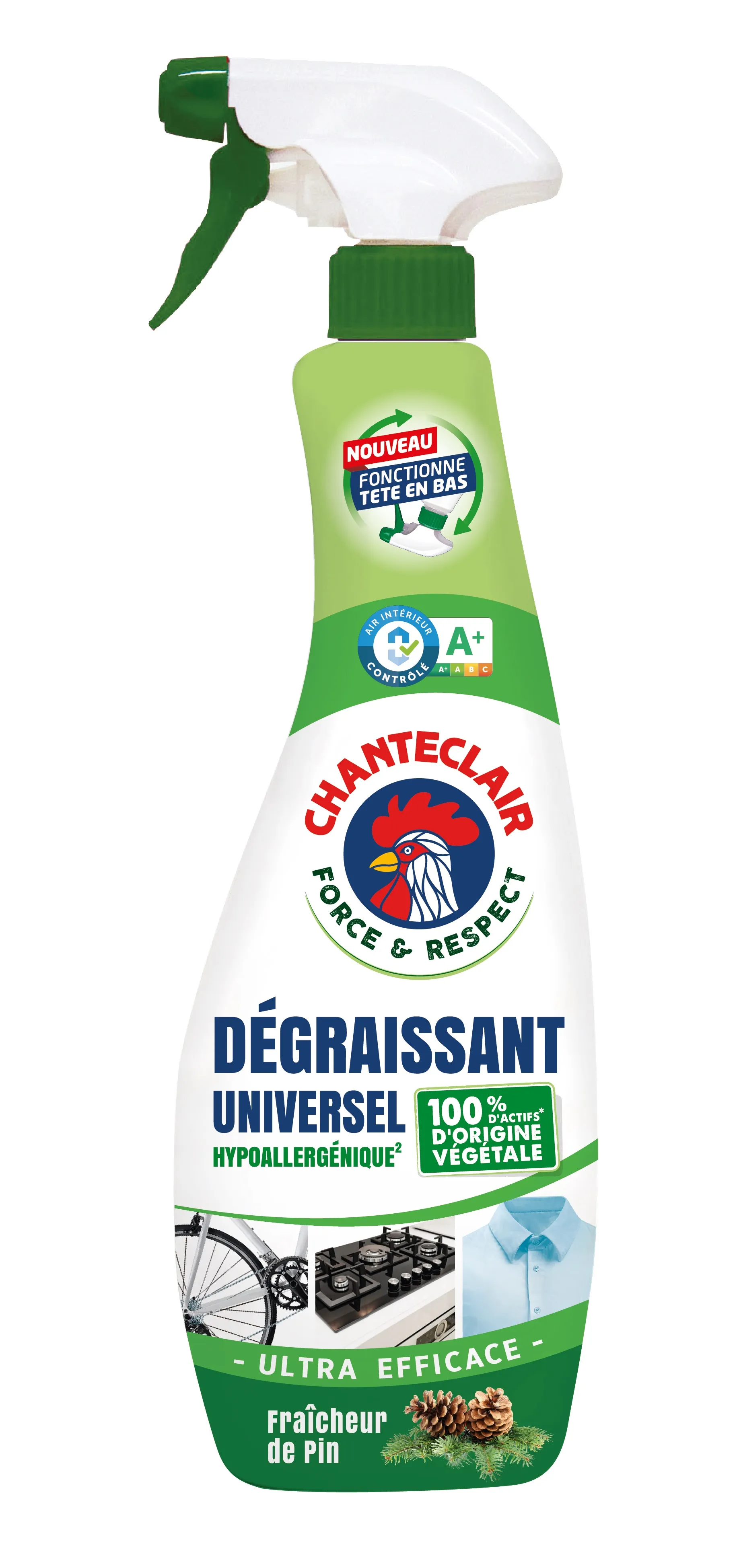 Nouveau! Spray dégraissant ultra efficace à usage universel. 100% d'actifs d'origine végétale. Hypoallergénique.
