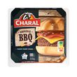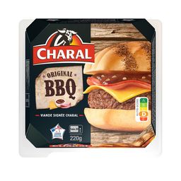Ingrédients : Pain spécial 41 % : farine de BLE, eau, farine de SEIGLE, levain de SEIGLE, sucre, levure, huile de colza, sel, BLE malté torréfié concassé, huile d’olive, gluten de BLE, levure sèche désactivée, émulsifiant : E472e, conservateur : E282, agent de traitement de la farine : E300. Préparation de viande hachée de bœuf cuite aromatisée 36 % : viande bovine* 98 % (soit 35 % sur produit total), arômes, arômes de fumée, sel, sucre caramélisé, antioxydant : extrait de romarin. Sauce barbecue 12 % : eau, oignons au vinaigre (conservateur : E223) 26 % (soit 3 % sur produit total), purée de tomates double concentrée, vinaigre d’alcool, sucre, amidon modifié, sucre caramélisé, huile de colza, sel, arôme de fumée, arômes naturels. FROMAGE fondu 6,5 % : FROMAGE 51 % (soit 3 % sur produit total), eau, BEURRE, amidon modifié, poudre de LAIT écrémé, protéines de LAIT, sel de fonte : E331, poudre de LACTOSERUM, gélifiant : E407, sel, colorants : E160a, E160c. Bacon fumé aromatisé 4,5 % : viande de porc* 89 % (soit 4 % sur produit total), sel, arôme de fumée, arômes, sirop de glucose, conservateur : E250, antioxydant : E301, épices. Ce produit contient : BLE, SEIGLE, LAIT. Traces éventuelles de graines de sésame, moutarde, oeuf, poisson, céleri.