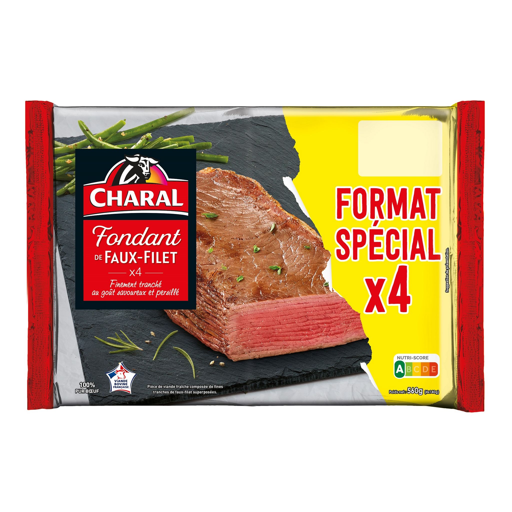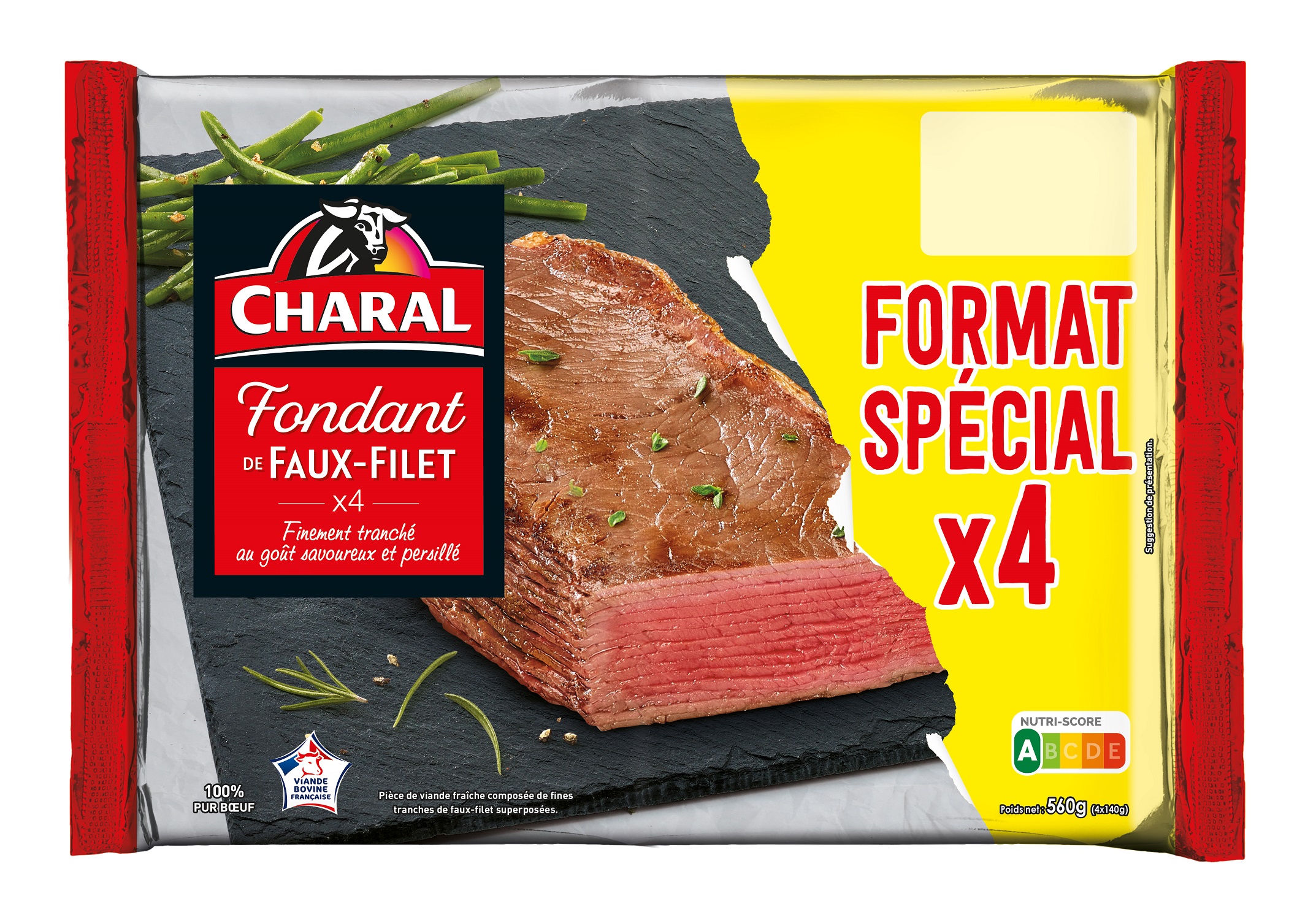 Pièce de viande fraîche composée de fines tranches de faux filet superposées