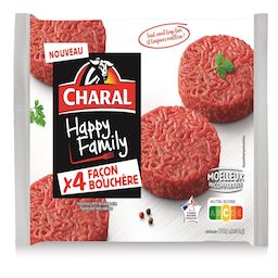 C'est une préparation de viande bovine hachée à 15 % matières grasses avec des fibres végétales, formée.