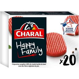 Préparation surgelée à 80 % de viande hachée de boeuf avec des fibres végétales de pois.