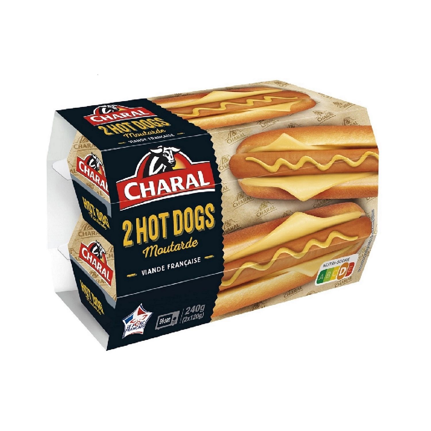 Ingrédients : Pain spécial 50 % : farine de BLE, eau, sucre, levure, huile de colza, sel, gluten de BLE, conservateur : E282, vinaigre d’alcool, émulsifiants : E471, E472e, farine de fève, agent de traitement de la farine : E300. Saucisse de Strasbourg 29 % : viande de porc origine France 70 % (soit 20 % sur produit total), eau, gras de porc, fibres de pois, arômes naturels, sel, colorant : rouge de betterave, dextrose, conservateur : E250. FROMAGE fondu 14 % : FROMAGE 55 % (soit 7,7 % sur produit total), eau, amidons modifiés, BEURRE, protéines de LAIT, LAIT écrémé en poudre, sel de fonte : E331. Sauce 7 % : MOUTARDE de Dijon 80 % (soit 5,6 % sur produit total) (eau, graines de MOUTARDE, vinaigre d’alcool, sel, antioxydant : E224 [SULFITES], acidifiant : E330), eau, huile de tournesol, amidon modifié, épaississant : E415, arôme naturel de MOUTARDE, sel, extrait de racine de curcuma.