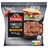 Préparation surgelée cuite à base de viande de boeuf reconstituée avec des protéines de pois et de soja.