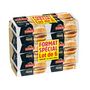 Ingrédients : Pain spécial 39 % : farine de BLE, eau, levure, dextrose, huile de colza, sucre, GRAINES DE SESAME, gluten de BLE, sel, émulsifiants : E471, E472e, farine de fève, conservateur : E282, antioxydant : E300. Préparation de viande hachée de bœuf cuite aromatisée 38 % : viande bovine* 98 % (soit 37 % sur produit total), arômes, arômes de fumée, sel, sucre caramélisé, antioxydant : extrait de romarin. Sauce 14 % : eau, oignons, huile de colza, amidon transformé de maïs, MOUTARDE de Dijon (eau, graines de MOUTARDE, vinaigre d’alcool, sel), LAIT écrémé en poudre, poivre 2 % (soit 0,3 % sur produit total), oignons déshydratés frits à l’huile de tournesol, arômes naturels de poivre, fibres de chicorée et de lin, vinaigre d’alcool, sel. FROMAGE fondu 9 % : FROMAGE 51 % (soit 4,5 % sur produit total), eau, amidon transformé de maïs, BEURRE, protéines de LAIT, poudre de LAIT écrémé, sel de fonte : E331, poudre de LACTOSERUM, huile de piment jaune, concentré de jus de carotte et de pomme.