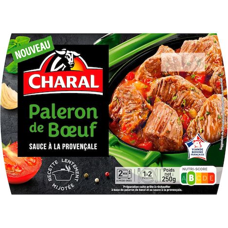 Préparation cuite prête à réchauffer à base de paleron de bœuf et sa sauce à la provençale.