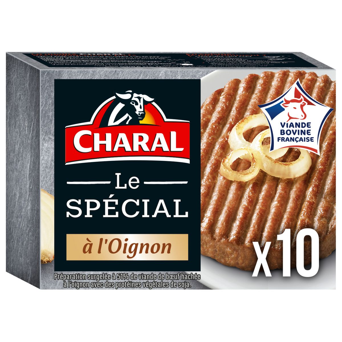 Préparation surgelée à 51 % de viande de boeuf hachée à l'oignon avec des protéines végétales de soja