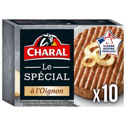 Ingrédients : Viande hachée de bœuf 51 % (origine france), protéines végétales de SOJA réhydratées (26 %), eau, oignons frits à l'huile de tournesol et/ou colza et oignons en poudre déshydratés 2,4 %, chapelure (farine de BLE, sel, poudre à lever : E503ii), sel, arôme, poudre de betterave rouge.