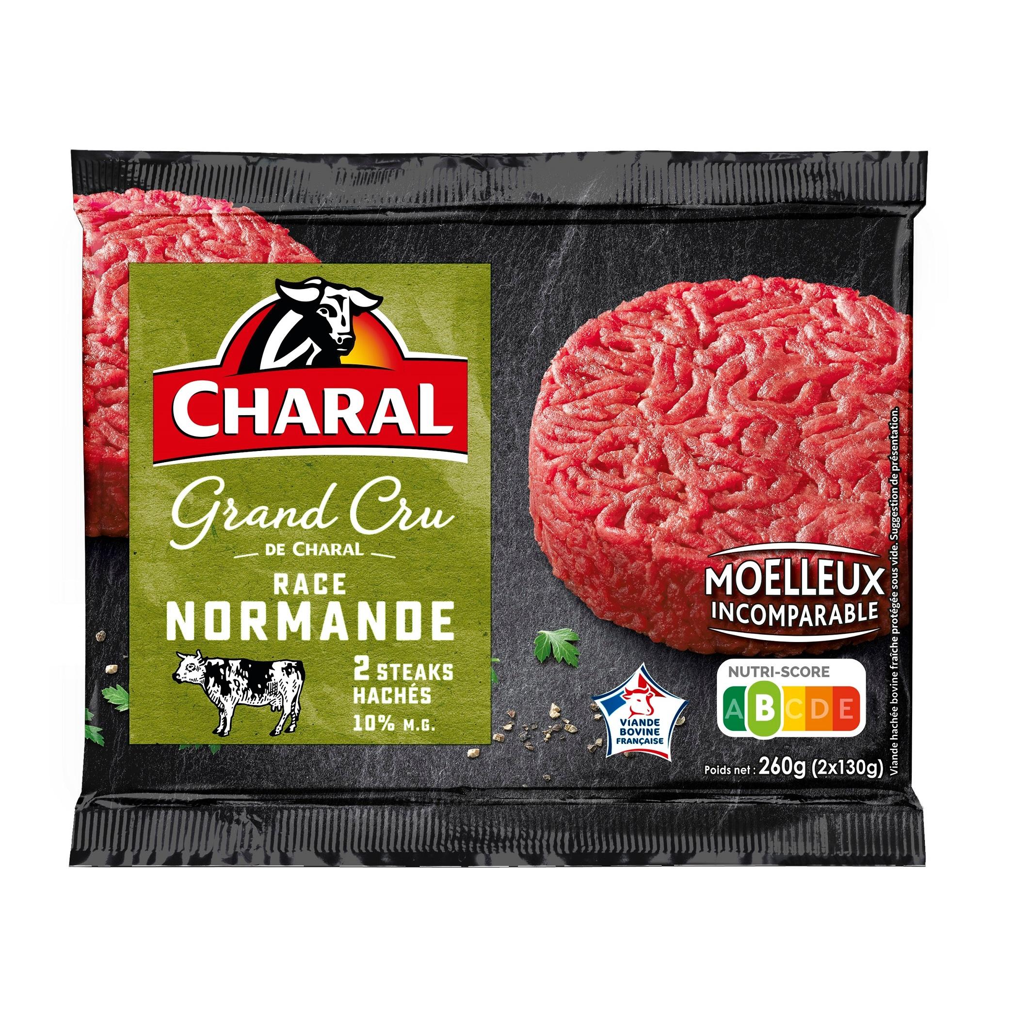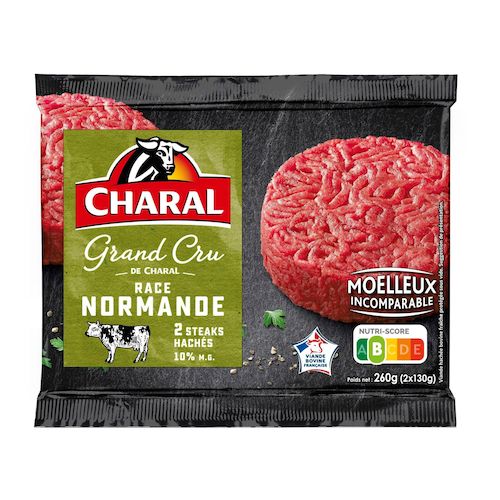 Ce sont des steaks hachés pur bœuf 10 % matières grasses Race Normande formés sous basse pression.
