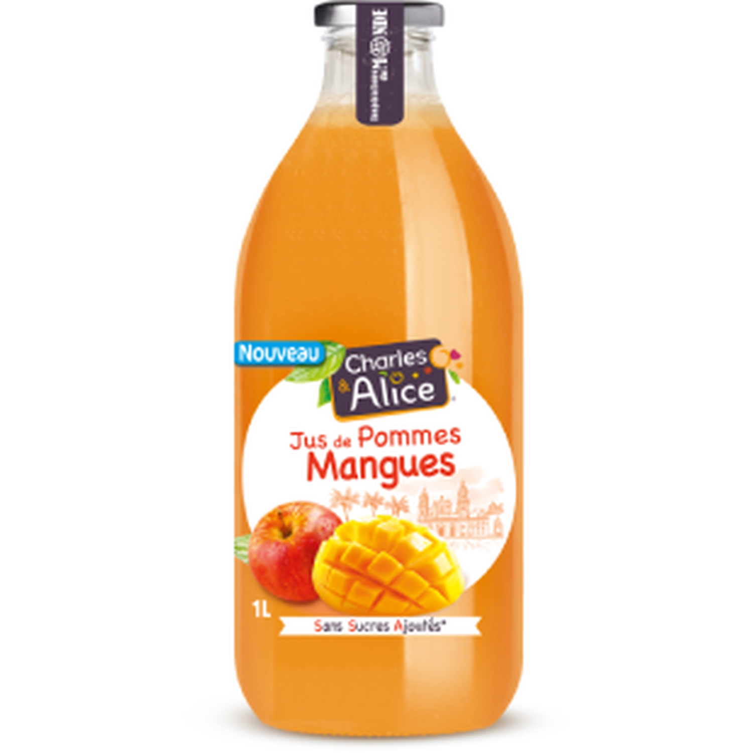 Ingrédients : Jus de pommes 79,9%, purée de mangues 20%, antioxydant : acide ascorbique.