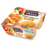 Purée et morceaux de pommes 85,7%, miel 12%, sucre, arôme naturel de miel, antioxydant : acide ascorbique acidifiant : acide citrique, sel.