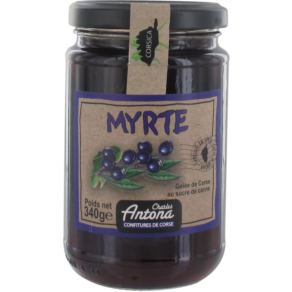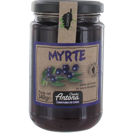 jus de myrtes, sucre de canne 39%, sirop de glucose, gélifiant : pectine de fruit, jus de citron, acidifiant : acide citrique