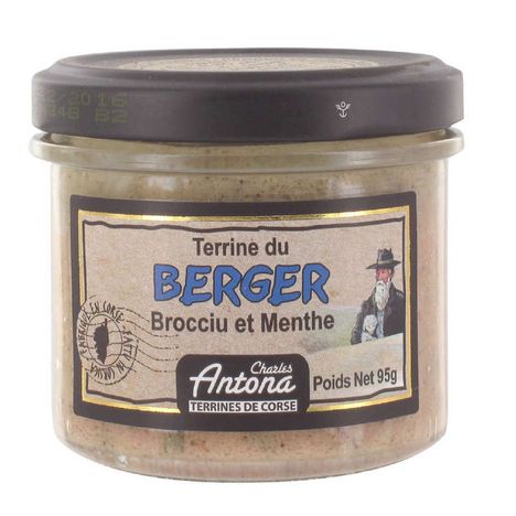 Laissez-vous tenter par la nouvelle création originale de Mr Antona incluant le savoureux mélange de la viande de porc, du brocciu (fromage frais AOC corse préparé à partir du petit lait de brebis) et de la menthe. Vous apprécierez la Terrine Charles Antona du "Berger" au Brocciu et à la Menthe pour son goût subtil et frais. A déguster sur une belle tranche de pain de campagne en apéritif