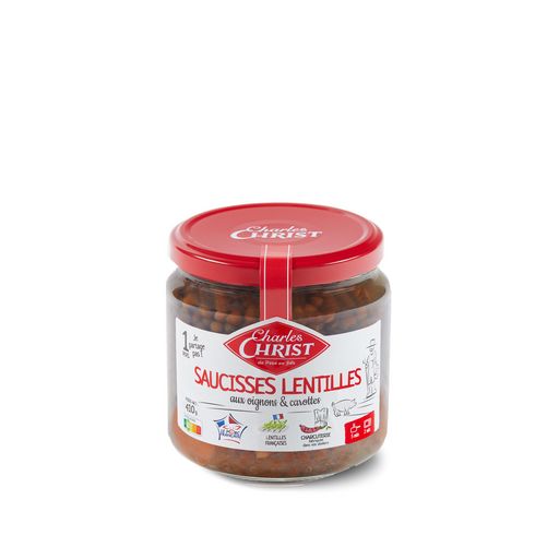 Nos SAUCISSES LENTILLES sont composées de lentilles cuisinées avec des carottes et de petits oignons qui sont accompagnées de saucisses de porc. Nos lentilles sont cultivées en France, notre viande de porc est 100% française. Nos saucisses lentilles sont sans sucre ajouté, sans exhausteur de goût, sans colorant et sans huile de palme.