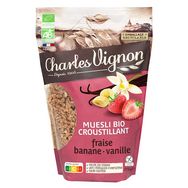 Céréales muesli bio croustillant fraise banane vanille