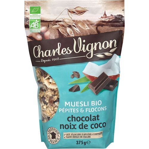 Charles Vignon muesli pépites flocons chocolat coco bio 375g