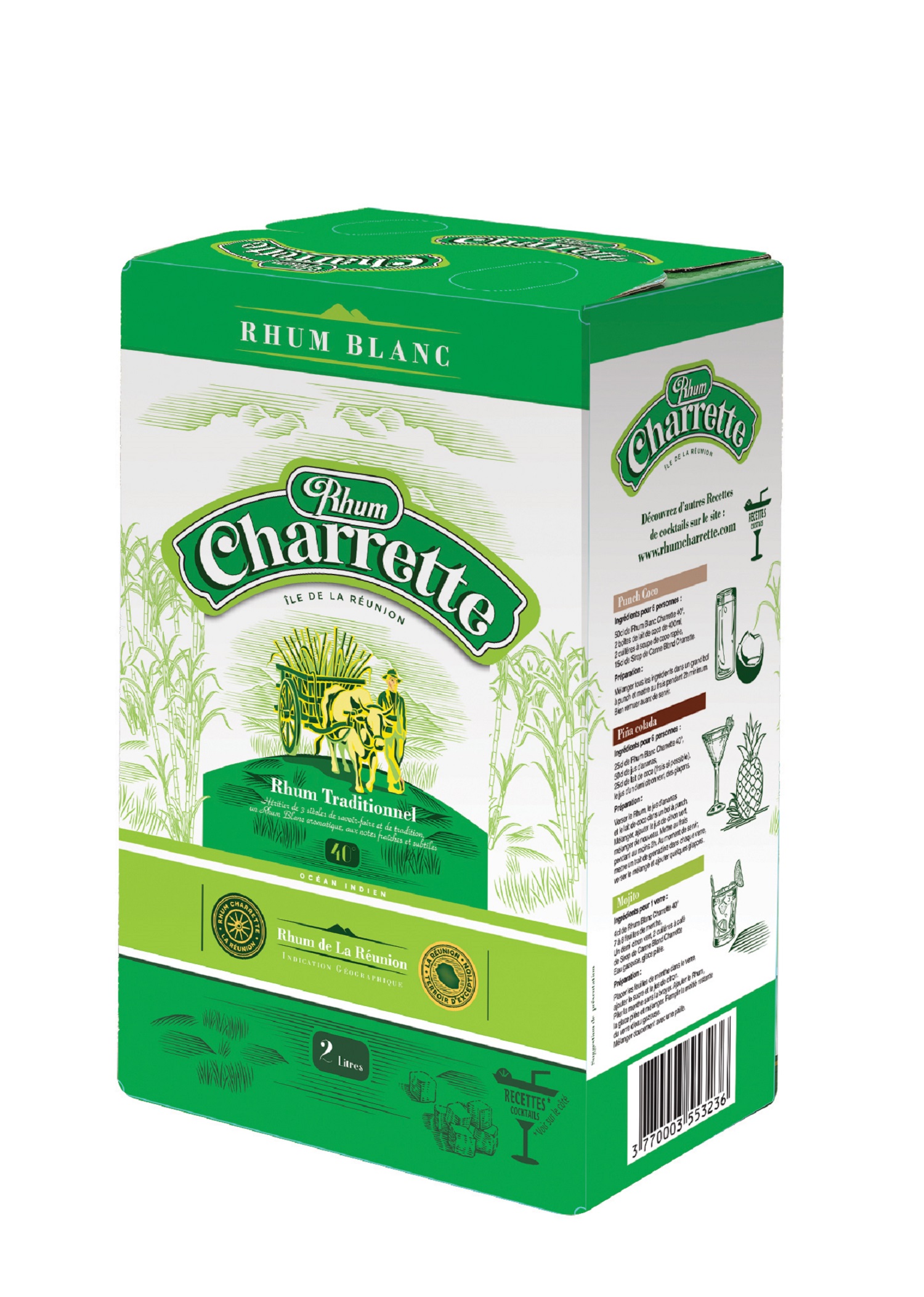 Le rhum blanc Charrette 40° a été imaginé spécialement pour vous permettre de créer facilement vos propres apéritifs et rafraichissements. Il laisse s’épanouir pleinement les saveurs fruitées des punchs et les arômes subtils des cocktails. Sa finesse en fait un ingrédient idéal, sans renoncer au caractère unique du rhum traditionnel réunionnais.