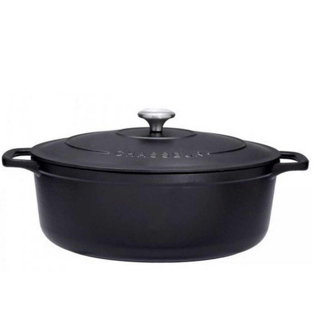 Chasseur PUC473101 Cocotte ovale en fonte émaillée 31cm noire sublime Chasseur PUC473101Cocotte en fonte de haute qualité.Indispensable pour réussir tous vos plats mijotés tout en conservant moelleux et saveur de vos préparations. Débutants ou cordons-bleus, redécouvrez les recettes traditionnelles