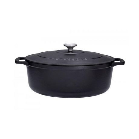 Chasseur PUC473301 Cocotte ovale en fonte émaillée 33cm noire sublime Chasseur PUC473301Cocotte en fonte de haute qualité.Indispensable pour réussir tous vos plats mijotés tout en conservant moelleux et saveur de vos préparations. Débutants ou cordons-bleus, redécouvrez les recettes traditionnelles et donnez libre cours à votre imagination culinaire. La fonte permet une montée en température progressive et une répartition homogène de la chaleur. Elle accumule la chaleur et la restitue lentement pour maintenir les plats au chaud plus longtemps tout en réalisant des économies d'énergie. Double émaillage intérieur noir. Privilégier un intérieur noir vous offre une plus grande résistance aux tâches et aux rayures. Facile à utiliser et à entretenir. Robuste et fiable dans le temps.