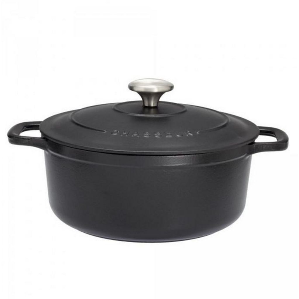 Chasseur PUC471001 Cocotte ronde CHASSEUR PUC471001 avec intérieur double émaillage, compatible à tous feux dont induction et au four jusqu'à 250°C.