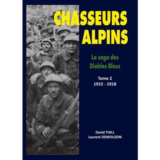 Le tome 2 de la Saga des Diables Bleus retrace l'histoire des chasseurs alpins de 1915 à 1918, Engagés dans les Vosges, à Verdun, dans la Somme, en Italie et dans la campagne de France de 1918, les chasseurs font partis des troupes d'éléte de l'Armée française. Ce livre, issu d'une collection de 4 tomes, est consacrée à la grande histoire des chasseurs alpins, de 1879 à nos jours. Il fait la synthèse de leur histoire, symbolique, uniformes et équipements au travers une multitude de chapitres richement illustrés de photos, souvent inédites, de rares pièces d'uniformes, de fanions et d'insignes, issus de la collection des auteurs et de grandes collections privées.
