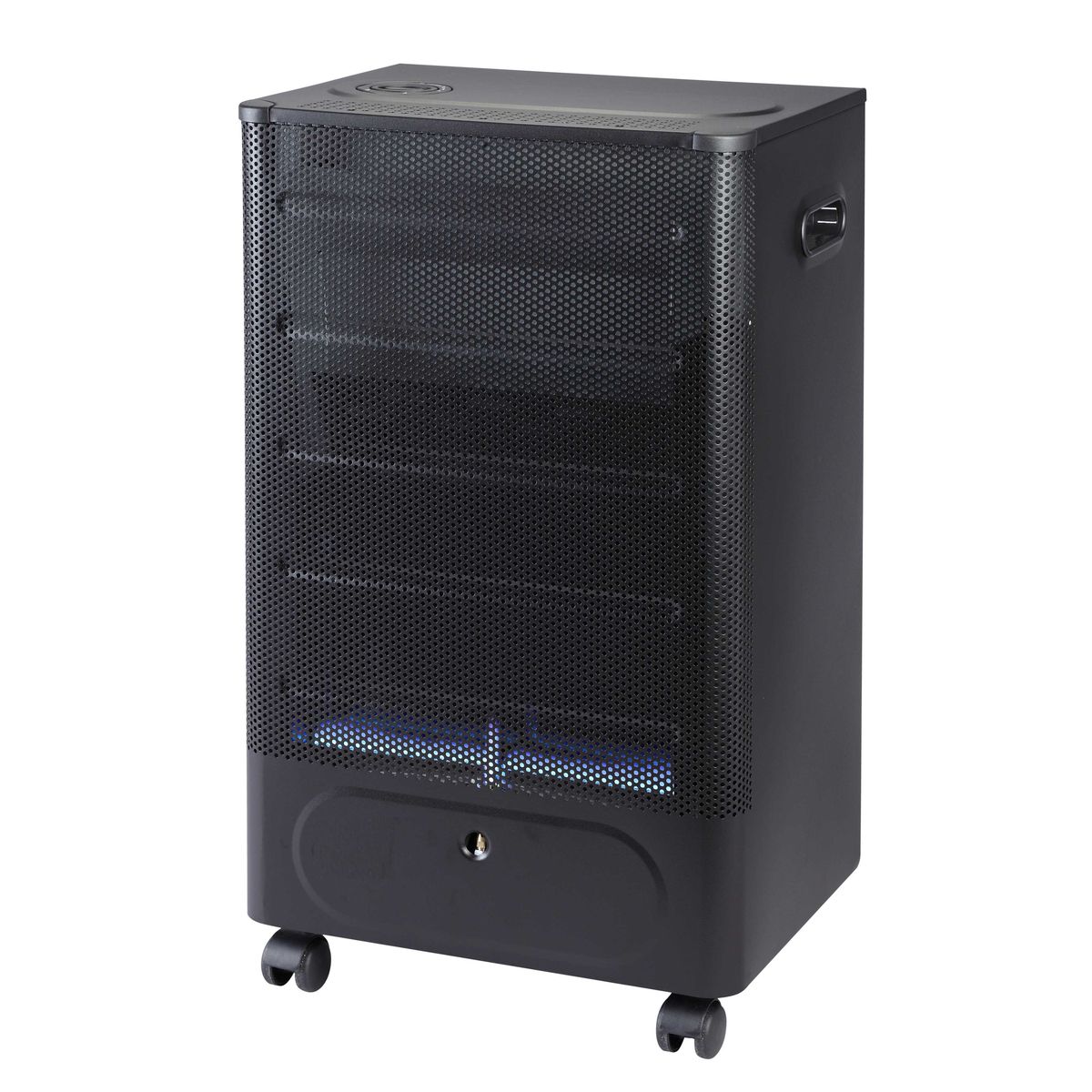 Monté sur 4 roulettes pivotantes avec rangement intégré pour bouteille de gaz, ce chauffage mobile s'installe en toute simplicité. Compatible avec les bouteilles Butane 13 kg, Viséo et Cube, il offre jusqu'à 118 heures d'autonomie en utilisation continue sur la puissance minimale.