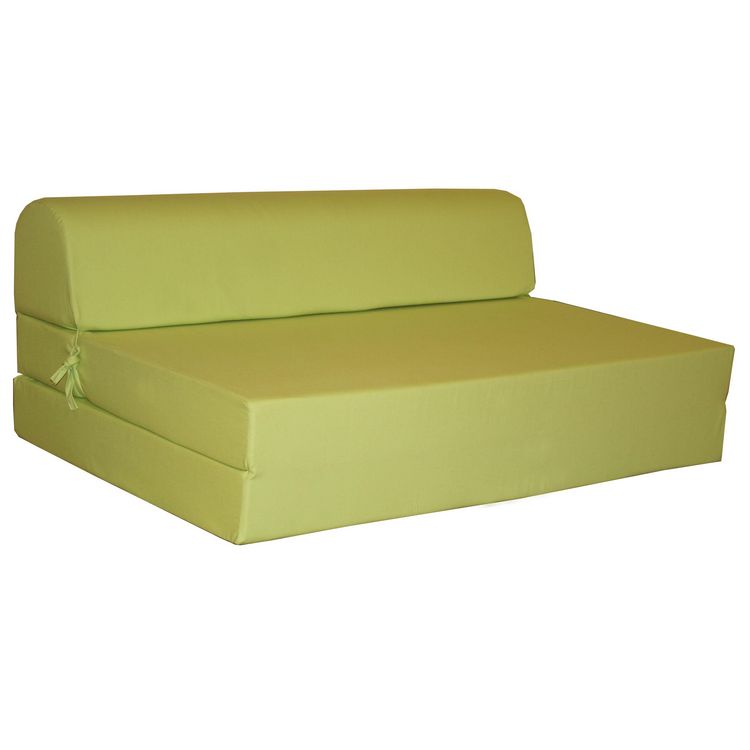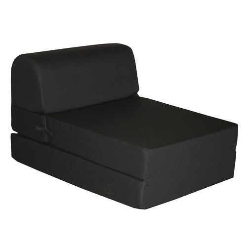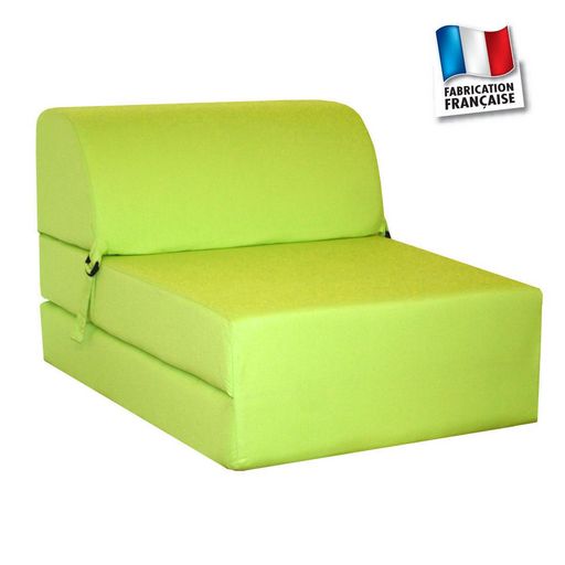 Cette chauffeuse disponible en plusieurs coloris est aussi décorative en fauteuil pouf que pratique lorsqu'elle est dépliée en lit d'appoint.