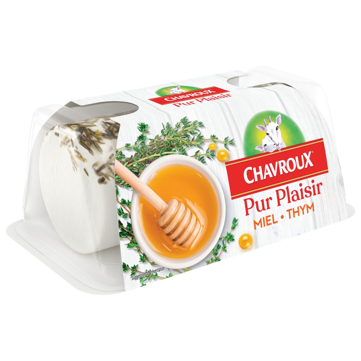 Fromage français au lait de chèvre pasteurisé agrémenté de miel et de thym.