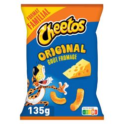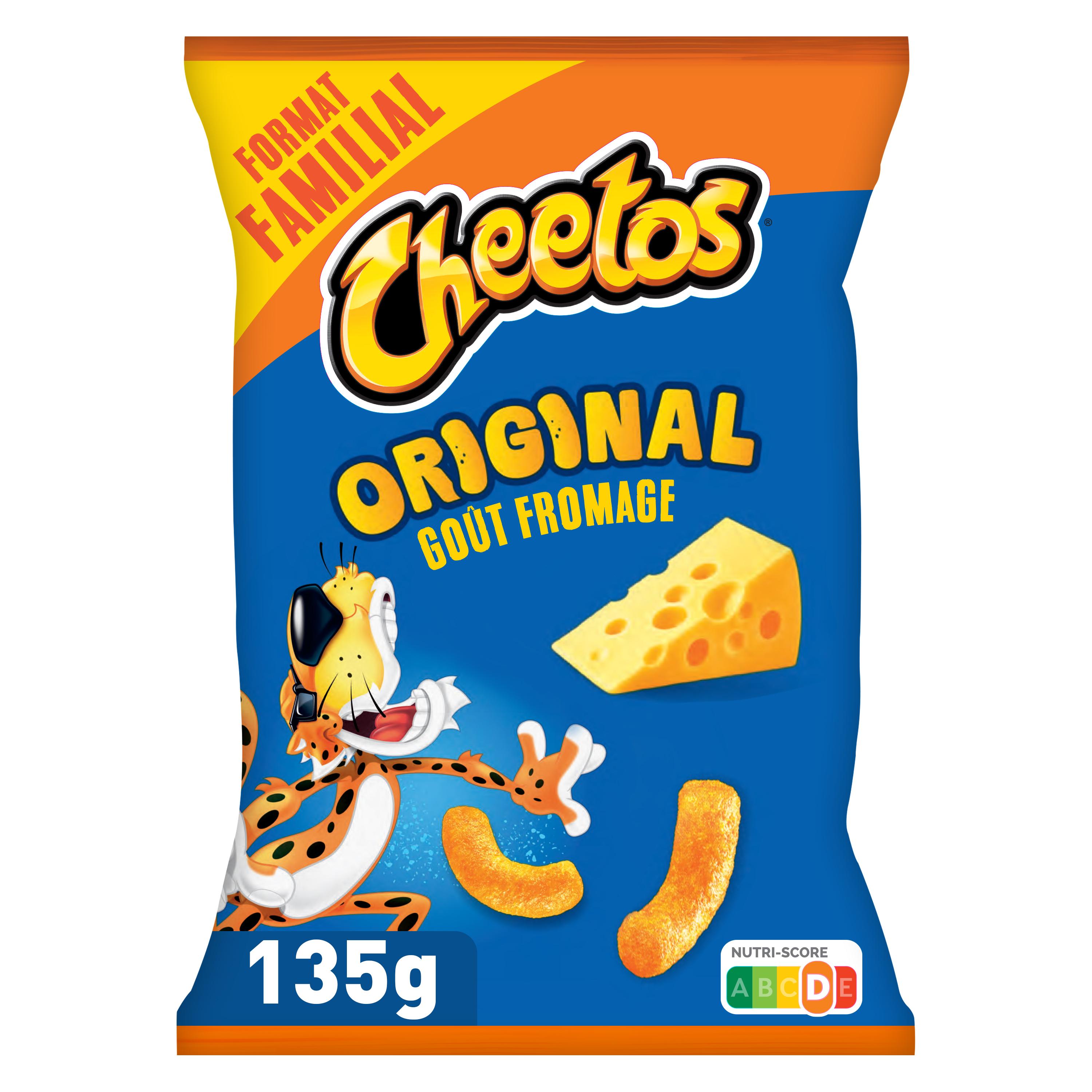 CHEETOS, DES BISCUITS SALÉS AU BON GOÛT DE FROMAGE : Une saveur audacieuse de fromage avec une texture légère et aérée. Les biscuits salés Cheetos sont pleins de saveur et fabriqués avec du vrai fromage ! DU FUN POUR L'APÉRITIF : De délicieux snacks soufflés à base de maïs aux formes ludiques, qui raviront toute la famille et particulièrement les adolescents lors des apéros ! UN SNACK POUR VARIER LES PLAISIRS : Alternative amusante aux chips, tuiles, et tortillas, les produits Cheetos constituent un délicieux complément pour les bisuits salés apéritifs. UN EN-CAS CROUSTILLANT : les biscuits Cheetos sont naturellement extra croustillants et en font le snack favori des Américains ! CHEETOS, UNE MARQUE DE QUALITÉ : Soucieux de la qualité de ses produits, Cheetos Fromage s'engage et vous propose une recette sans conservateurs, sans arômes ni colorants artificiels.