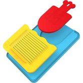 | Composition du set | Le kit comprend une planche à découper adaptée aux petites mains, une mini planche pliable pour faciliter le transvasement des ingrédients et une grille de découpe pratique pour obtenir des tranches régulières à coup sûr | |