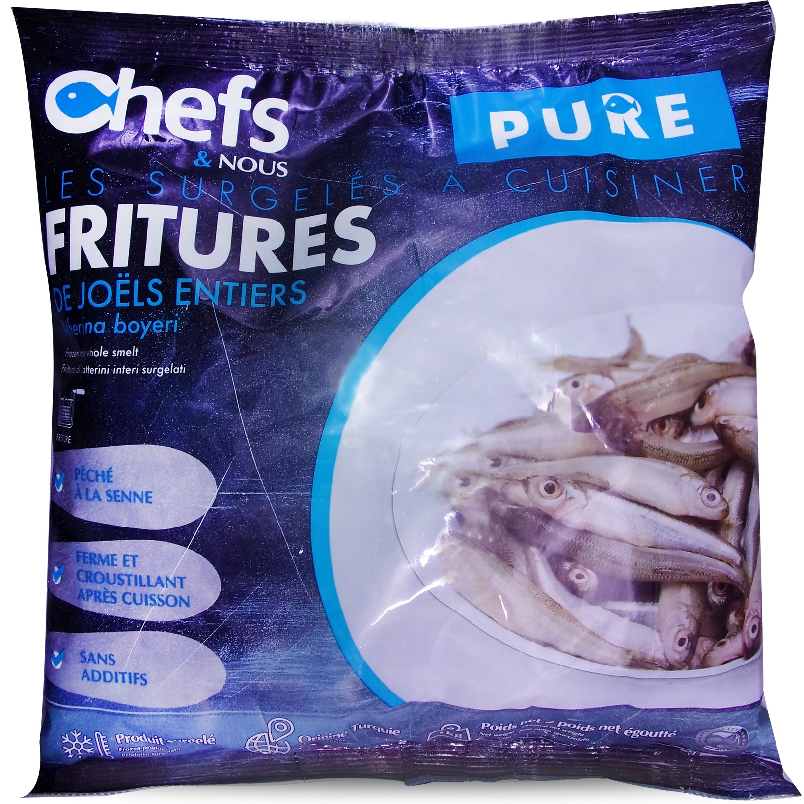 Petits poissons à frire ! Pour les préparer, 1 - faire décongeler et rincer avant utilisation. 2 - je les trempe dans du lait en poudre dilué avec un peu d'eau, 3 - je les égoutte dans une passoire. 3 - les passer dans une assiette de farine de blé ou de riz. 4 - faire griller dans un fond d' huile bien chaude. 5 - les retouner après 4mn de cuisson. 6 - salez, poivrez, déguster avec une bonne salade et des smiley.😊