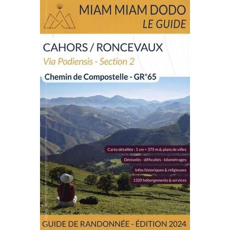 En savoir +Guide Miam Miam Dodo est le livre qu'utilisent tous les marcheurs vers Compostelle depuis 1998. Entièrement mis à jour chaque année, il vous apporte les informations essentielles : où dormir, où manger et à quel prix dans un fuseau de 4 km de part et d'autre du GR65, entre Le Puy-en-Velay et Roncevaux. Il offre les meilleures cartes à l'échelle de 1 cm = 375 m. Il vous permet également d'anticiper vos étapes avec dénivelés et kilométrages. Ami pèlerin, bon voyage !
