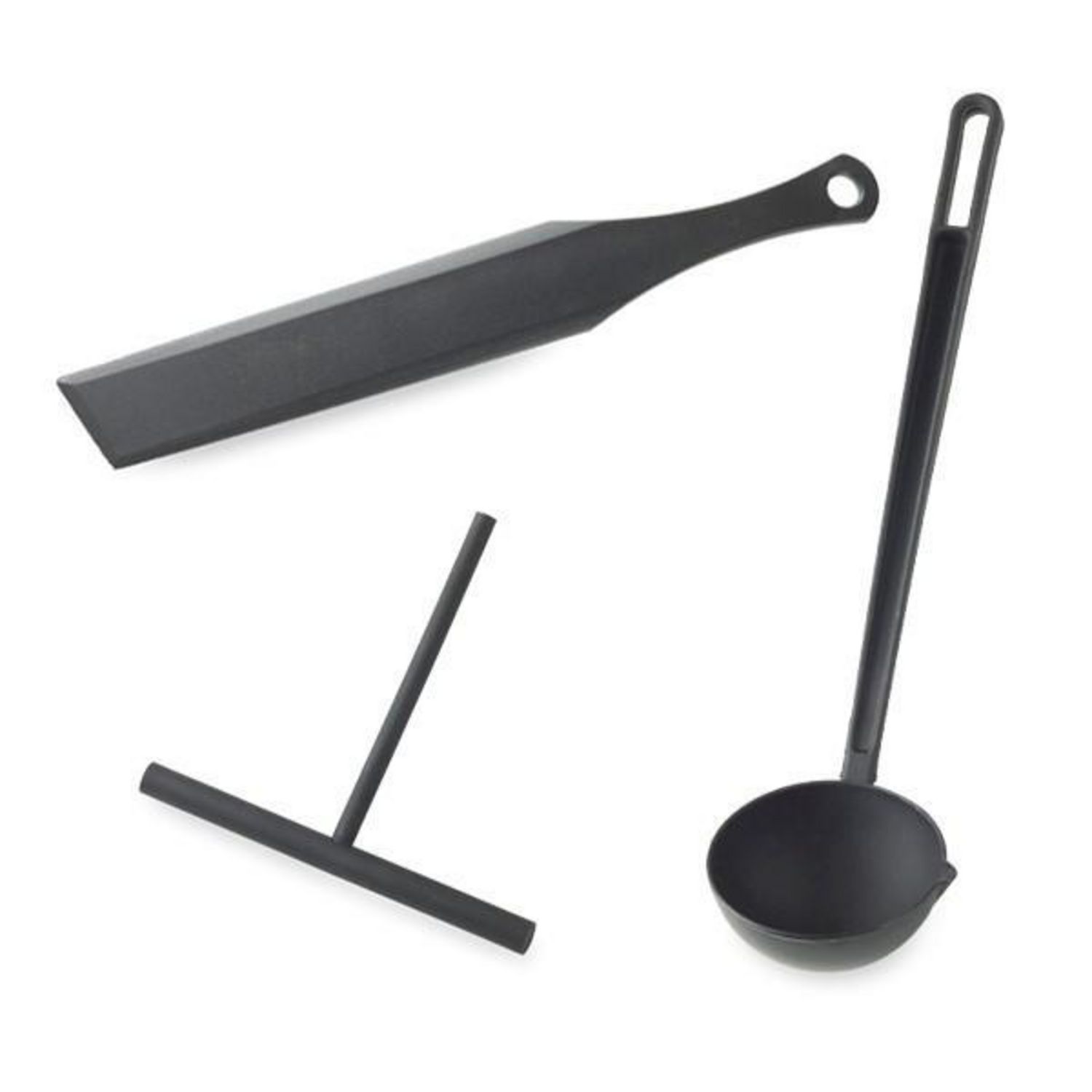 En savoir +Le set d'ustensiles à crêpes réunit les 3 ustensiles indispensables pour des crêpes parties réussies : Une louche avec bec verseur pour doser la pâte, 1 étaleur Et une spatule pour retourner les crêpes. Les ustensiles sont en nylon (ne rayent pas) et résistent jusqu'à + 200°C. Louche avec bec verseur diamètre 7 cm, longueur 28 cm. Etaleur longueur 15 cm, largeur 14 cm. Spatule largeur 4 cm, longueur 29 cm.