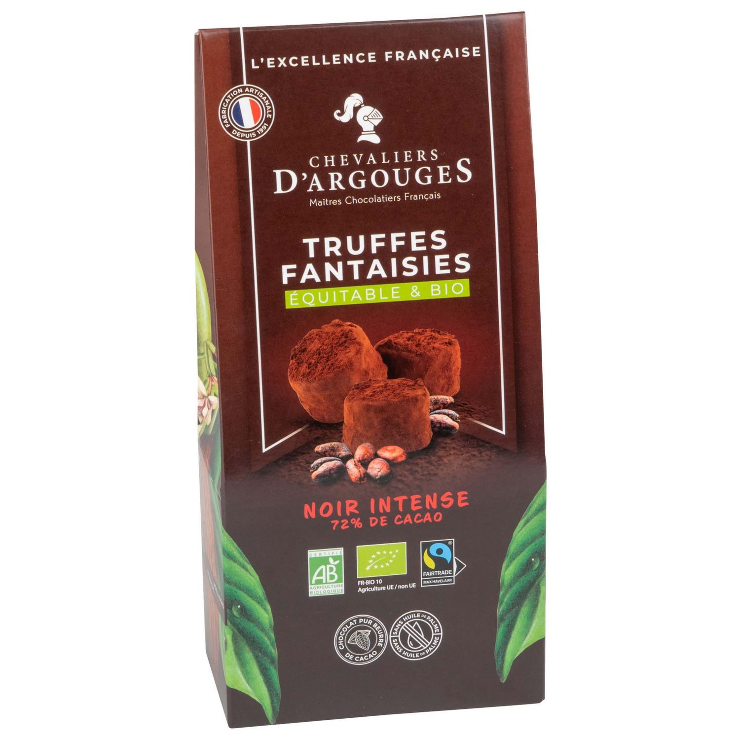 Ballotin de truffes fantaisies au chocolat noir 72% bio