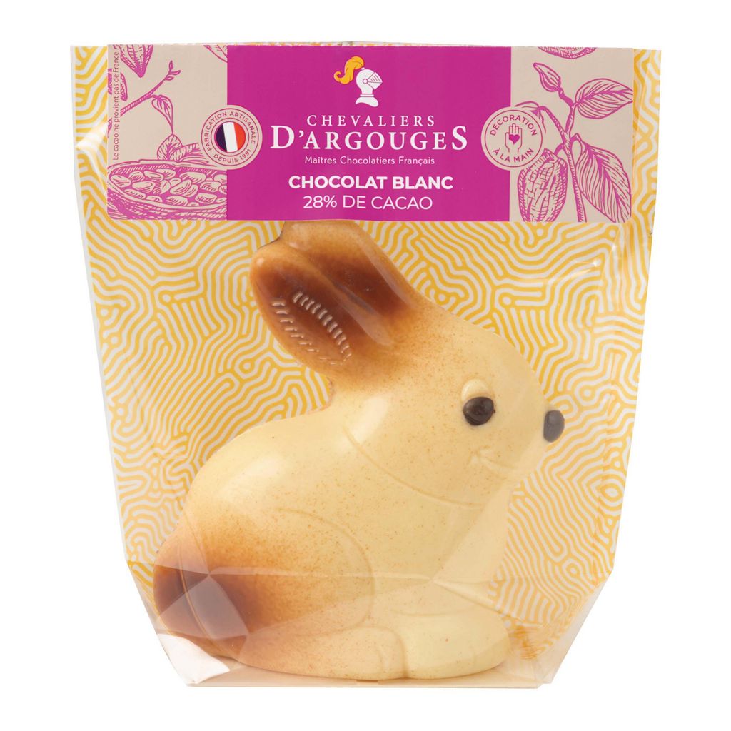 Vivez un instant gourmand unique en dégustant notre savoureux lapin chocolat blanc 28,3% de cacao !