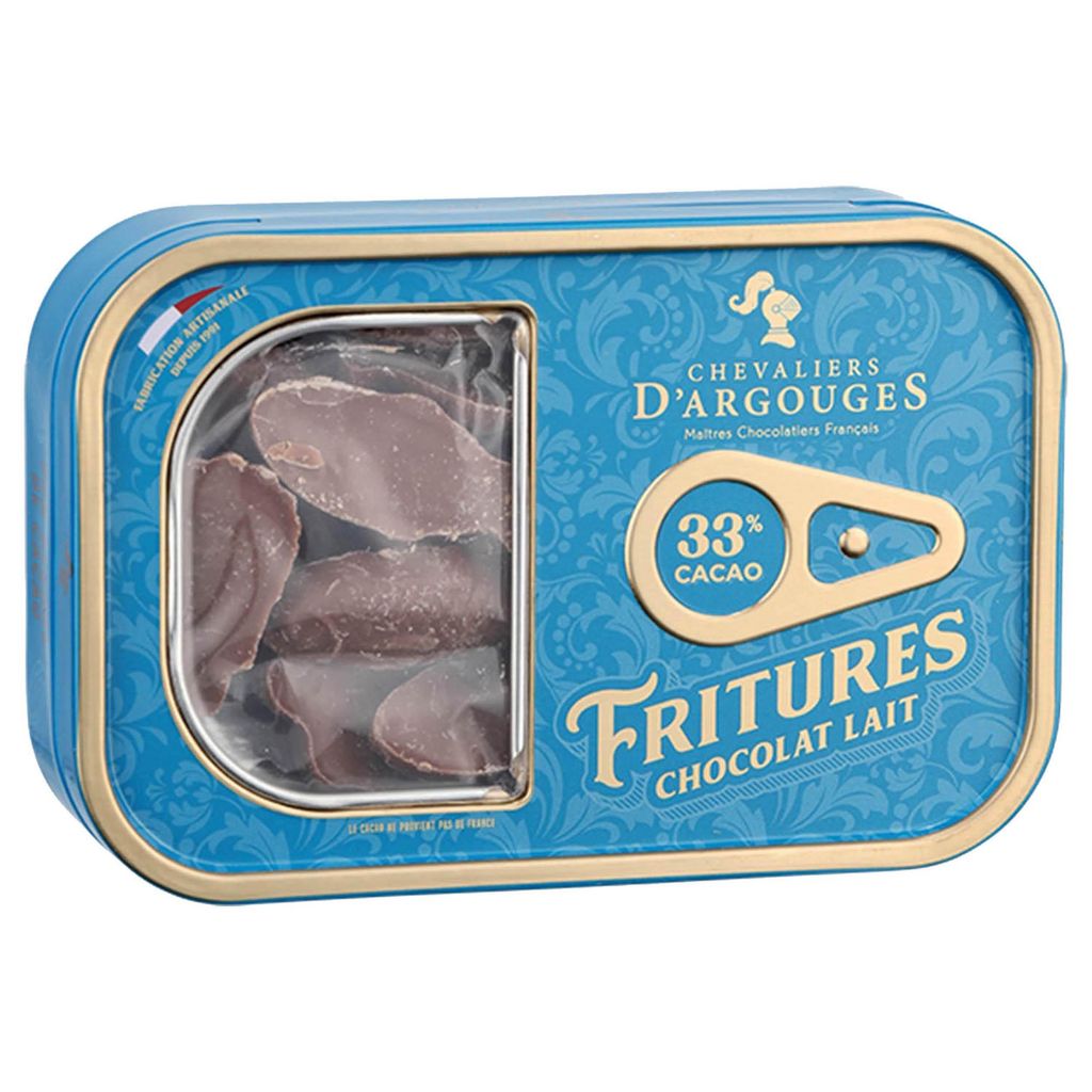Fritures au chocolat au lait dans une boite de sardines