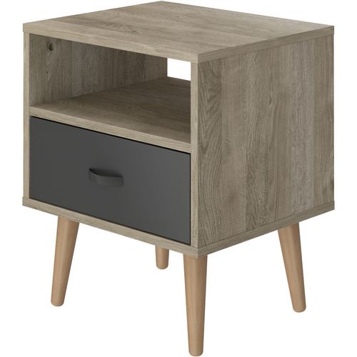 Mélamine coloris gris et chêne - Poignée en noir - 1 Tiroir - 1 Niche - Pieds en bois