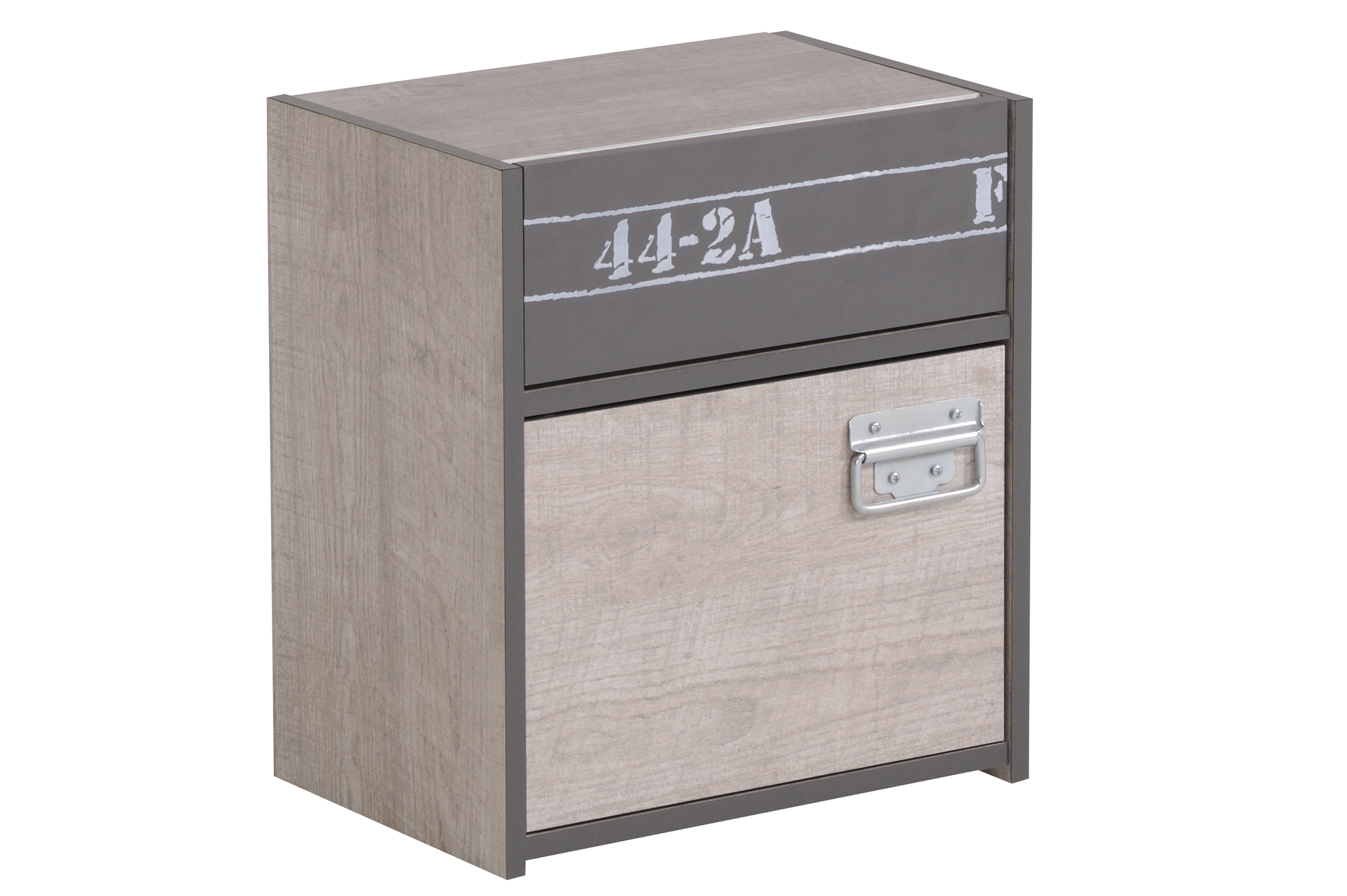 Craquez pour ce chevet stylée LOFTY qui optimisera l'espace disponible dans la chambre de votre enfant ! Ce chevet en panneaux de particules arbore un look industriel très tendance avec ces poignées en acier et son "décoprint" effet usé ! Son allure 2 tons grisé et boisé complète parfaitement son aspect moderne. Disposant d'une porte et d'un tiroir coulisses à billes, ce joli chevet permettra d'apporter du rangement complémentaire. Un meuble de fabrication française, stylé et fonctionnel qui ravira votre adolescent ! Pour une harmonisation parfaite, complétez la chambre de votre enfant avec les autres produits de la gamme LOFTY disponibles sur Auchan.fr.