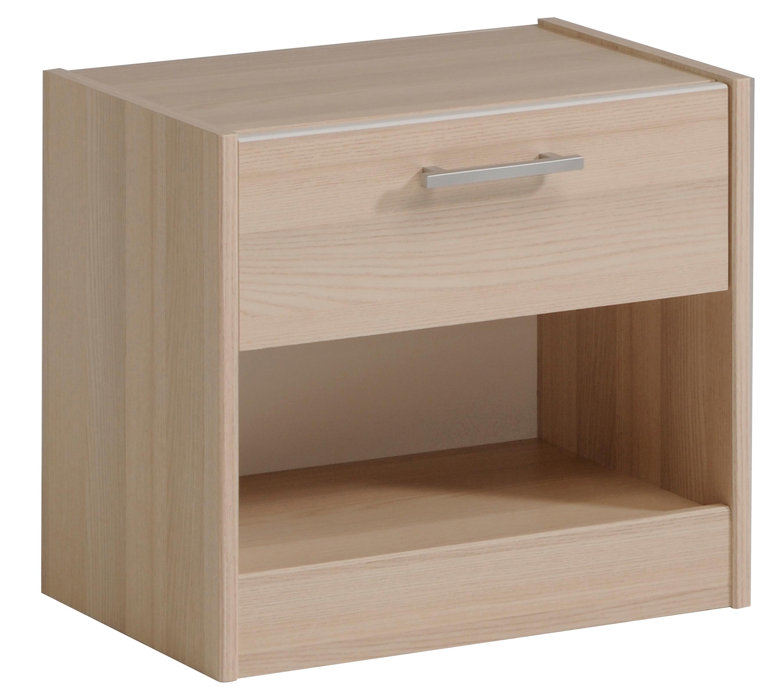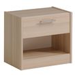 Chevet 1 tiroir 1 niche avec une structure en panneaux de particules. Coloris acacia clair et blanc.