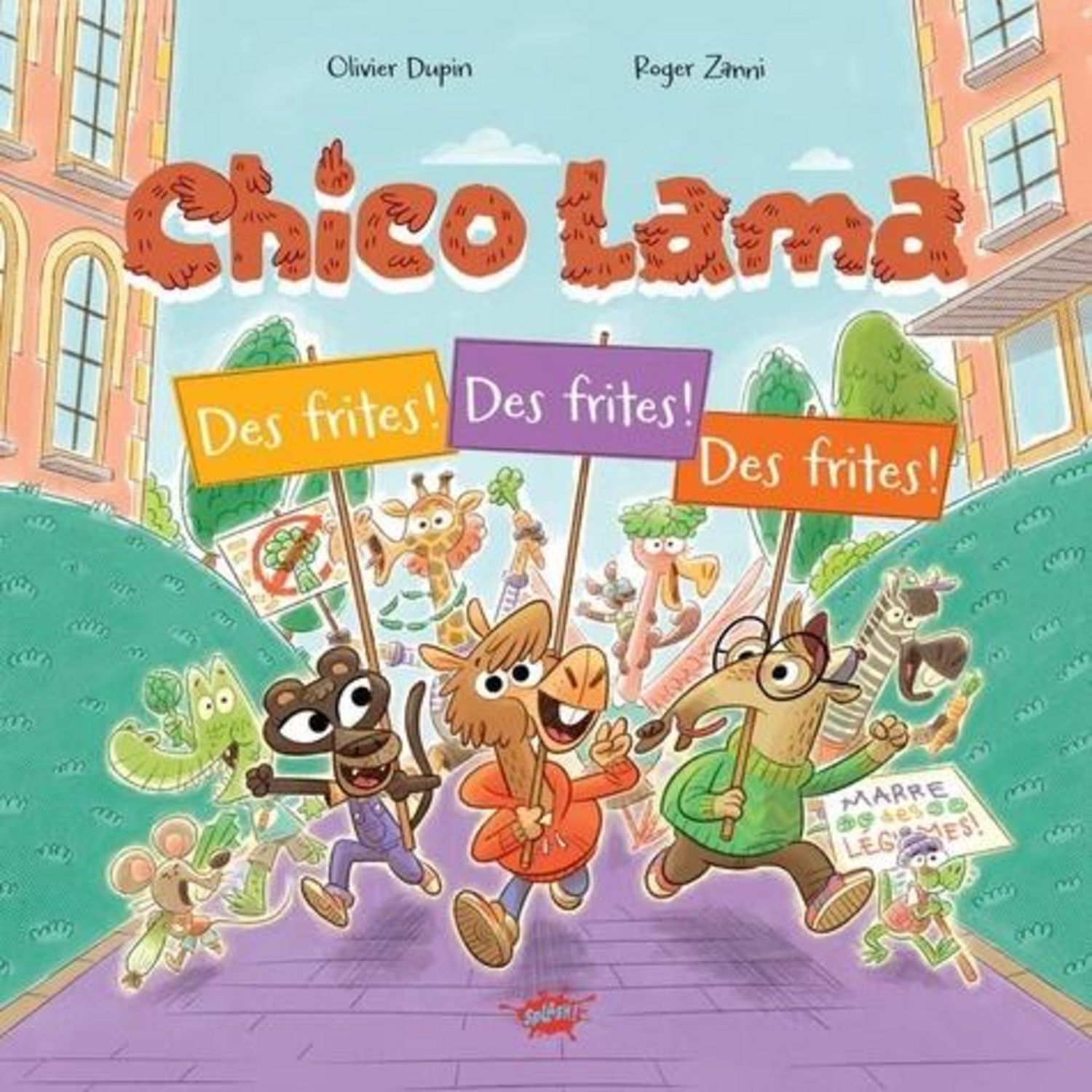Aujourd'hui, c'est la rentrée des altes ! Chico le lama est content de retrouver ses copains. Sauf qu'il y a du changement dans l'école : pas du côté des professeurs ni des élèves, non, non, mais du côté de la cantine. Désormais, il n'y aura plus de frites. Rien, pas l'ombre d'une pomme de terre. Un vent de révolte souffle sur la mèche de Chico. Des frites ! Des frites ! Des frites ! Nom d'un brocoli périmé, la grève est déclarée !