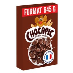 Découvrez les céréales CHOCAPIC® dans un paquet de 645g pour le petit-déjeuner. De délicieuses pétales de céréales au goût fort en chocolat qui sont fabriquées en France avec du blé complet cultivé plus durablement. La recette des pétales de céréales chocolatées est sans colorant ni arôme artificiel et enrichies en 7 vitamines. Et pour varier les plaisirs, CHOCAPIC® existe aussi en version BIO et en barres de céréales !