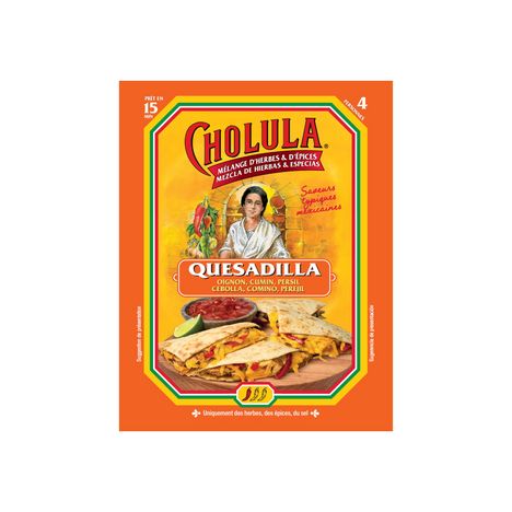 FOP : Saveurs typiques mexicaines. BOP : Créée au Mexique il y a plus de 100 ans, Cholula représente la culture culinaire mexicaine authentique. Cet assaisonnement est parfaitement équilibré entre saveurs et piquant, pour rendre votre cuisine tout simplement “suculenta”. Intensity = 1 chilies on 3 PRÊT EN 15 min