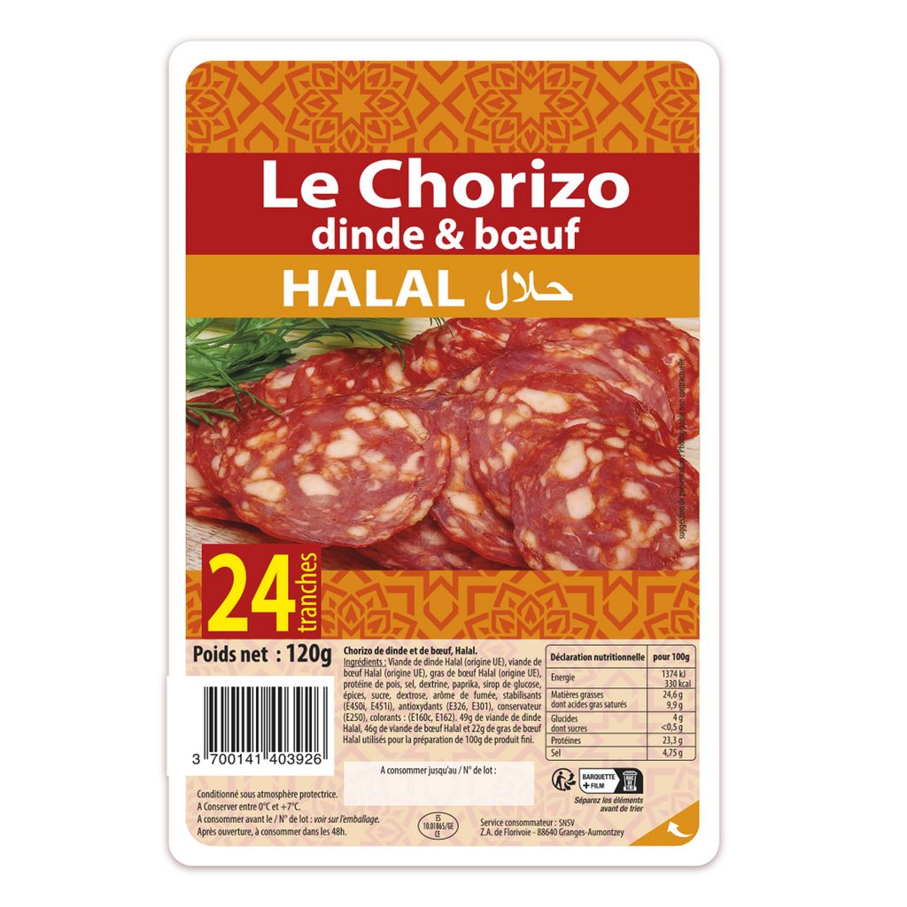 Chorizo boeuf volaille halal 24TR