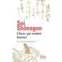 Haruha akebono : Au printemps, l'aurore . Tous les Japonais connaissent par coeur l'ouverture du Makura no sôshi (les Notes de chevet), fleuron de la littérature ancienne dû à une dame de cour de l'an mille. Ses premières phrases évoquent un paysage en mouvement : cycle des saisons, parcours du soleil, traînées de nuages, vol de lucioles ou d'oies sauvages. La toile de fond de montagnes à la lumière changeante place d'emblée les fastes du palais de Heian-kyô (l'actuelle Kyôto), que le lecteur s'apprête à découvrir, sous le signe de la fugacité des phénomènes et de sa conséquence immédiate, le mono no aware, la poignante mélancolie des choses . Corinne Atlan Choses qui rendent heureux , Choses qui égayent le coeur , Choses qui ont une grâce raffinée , Choses impatientantes , Choses qui ne font que passer ... Par listes délicates et perçantes, Sei Shônagon saisit, attentive à leur impermanence, l'essence poétique des êtres et des choses.